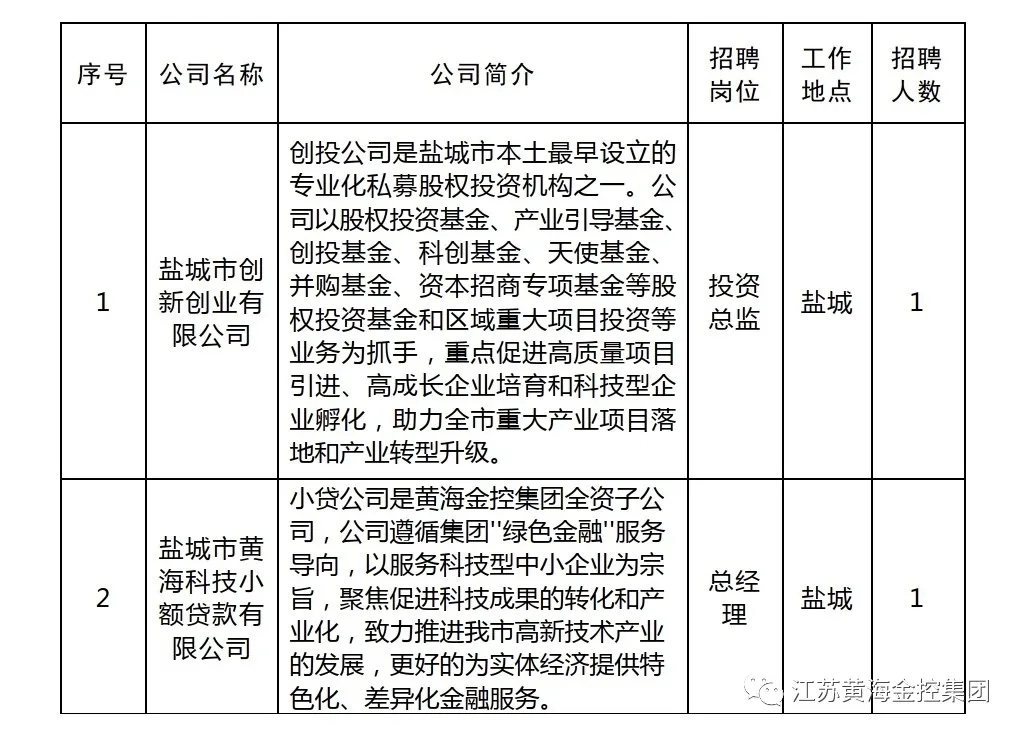 1、盐城市创新创业投资有限公司投资总监